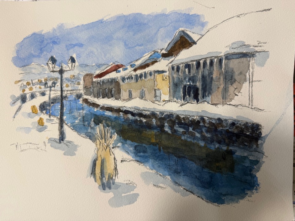 馬場健氏から「赤レンガ倉庫」の絵が届きました。「伝言板」への掲載希望