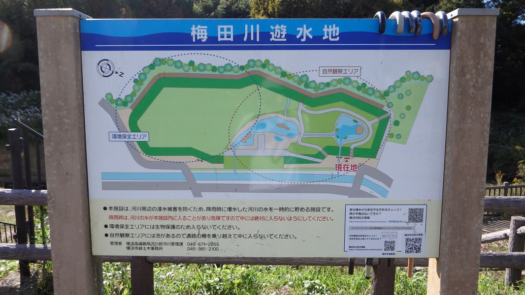 〔 17/18 〕 「梅田川遊水池」案内板。ここで村上はみんなと別れ、中山駅行きのバス道路へ向かう。