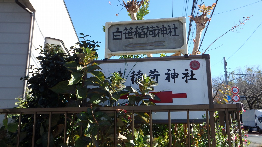 [ 37/46 ] 「白笹(しらささ)稲荷神社」方面へ。県道62号線「はだの桜みち」の「白笹稲荷入口」交差点にて。