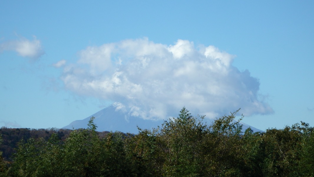 [ 6/46 ] 前方に富士山。雲にかくれている。