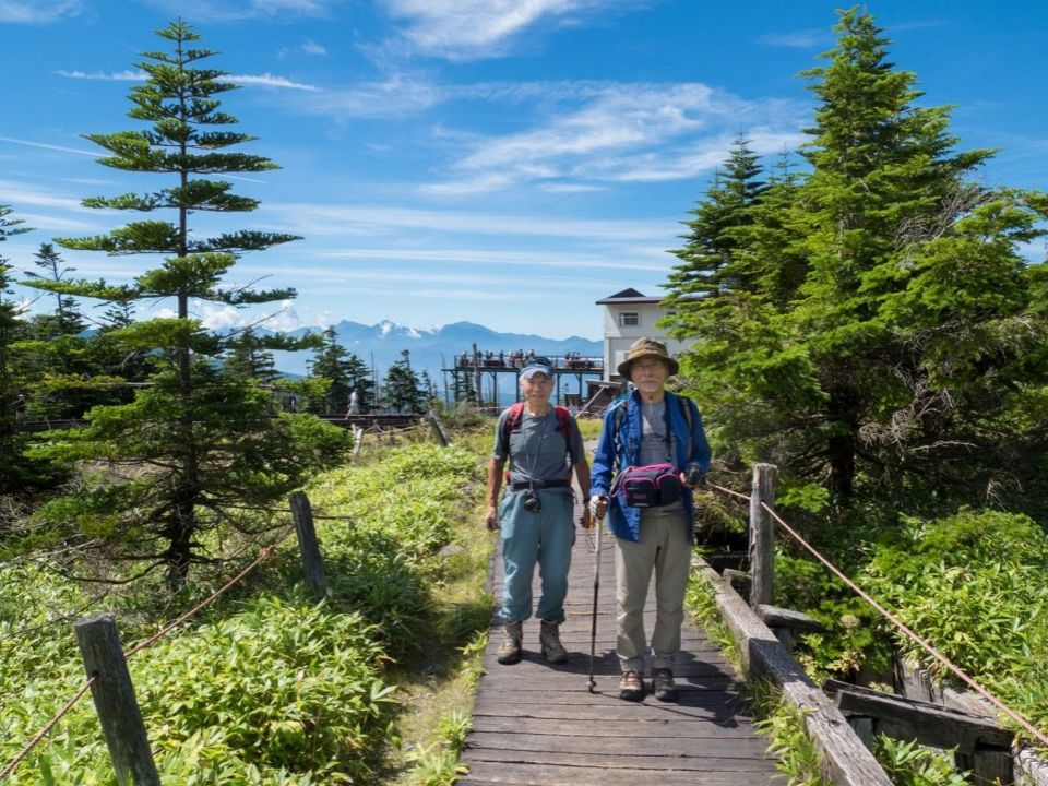 【 八ケ岳北横岳へ 】 [ 投稿:2025.8.23 ] ■ 別のスライドショーで見る[ 画像枚数:13枚 ] 北八ケ岳ロープウェイの駅から溶岩台地の坪庭を抜けて、針葉樹林のやや急な登り道へ。左右の斜面には苔がひろがり、シラビソ林の香りに包まれる。北横岳(2480m)の頂きからは360度全方向に絶景パノラマがひろがって、かつて歩いたあの山かの山も懐かしい。帰路は天然温泉に立ち寄ったり、地元八ケ岳高原の朝採れトウモロコシを購入したりと、サプライズ楽しみも満点、天気と仲間に恵まれた一日を楽しみました。 |