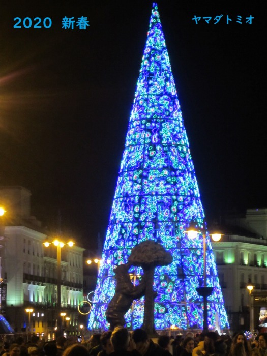マドリードのソル広場のクマの像です。バックがクリスマスイルミネーションです。スペインは1月6日までクリスマス週間です。2020年のクラス会には出席できませんが、